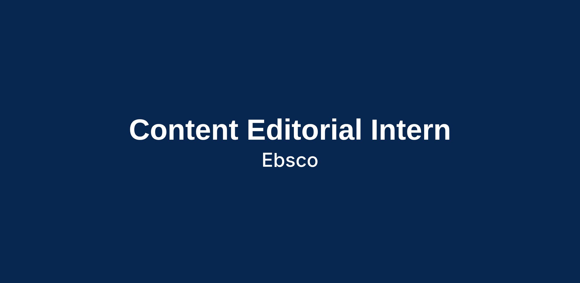 As part of the EIS Summer Intern Program, you will participate in a structured orientation beginning in June, along with enrichment and training events across the company. Learn more: https://www.ebsco.com/about/internship-opportunities