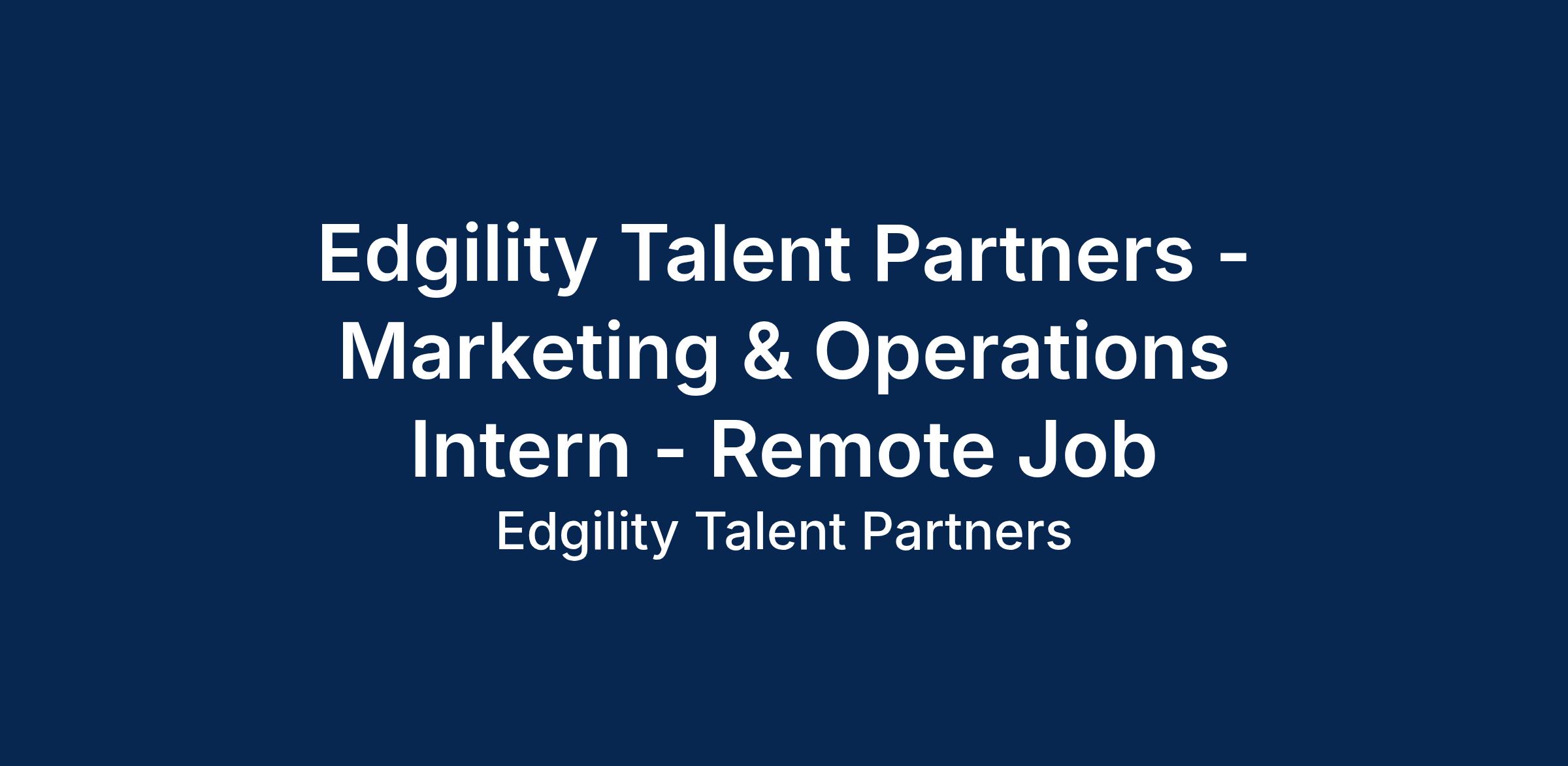 Edgility Talent Partners - Marketing & Operations Intern - Remote Job