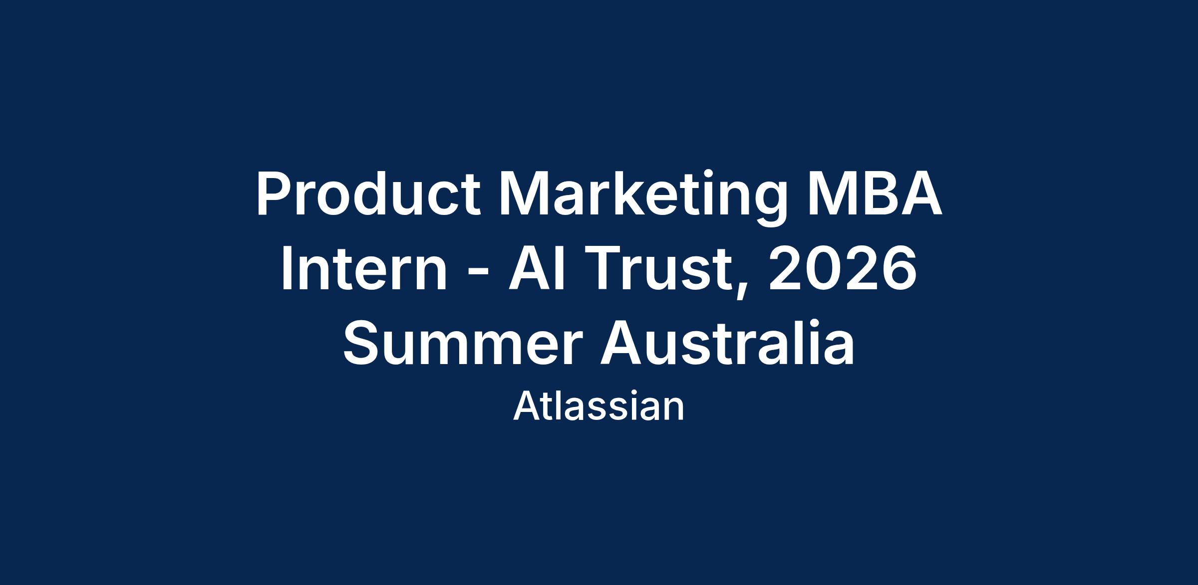 As our Product Marketing MBA Intern, AI Trust, you will report to the Trust Product Marketing team, working closely with other marketers, product managers, data scientists, sales, designers, and cross-functional GTM partners. You’ll help Atlassian sharpen our AI trust narrative and competitive position for products like Rovo by digging into how the market talks about AI trust, benchmarking competitors, and translating your insights into clear recommendations and content. Your work will help drive enterprise adoption of AI within Atlassian’s customer base.